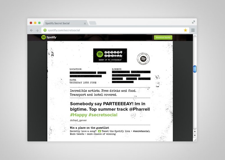 Freelance project at an agency in London. Taking the existing brand identity of two Spotify campaigns, Secret Social and Playoffs, I rolled out the creative to a wide range of marketing material including flyers, invitations, landing pages, emails, and social media branding.